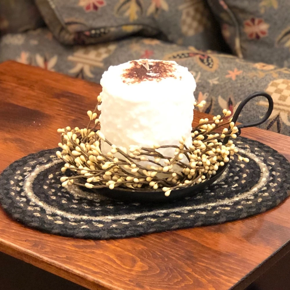 This hearth candle has a timeless signature, bumpy exterior and provides a beautiful glow to any room when burning. It’s appropriate for any room as a stand alone display, or grouped together in a shabby chic or rustic decor setting. Christmas Tree Hill has the largest and best real-flame candles in the country.