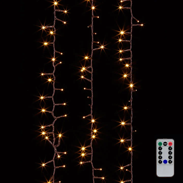 These amazing snake garland lights will stunningly illuminate your home decorations all season long. Long lasting LED bulbs are clustered very closely together along the wire to create a show-stopping display. Use indoor or outdoor. Use the 8 hour timer feature or the remote included for easy night-time shutoff.