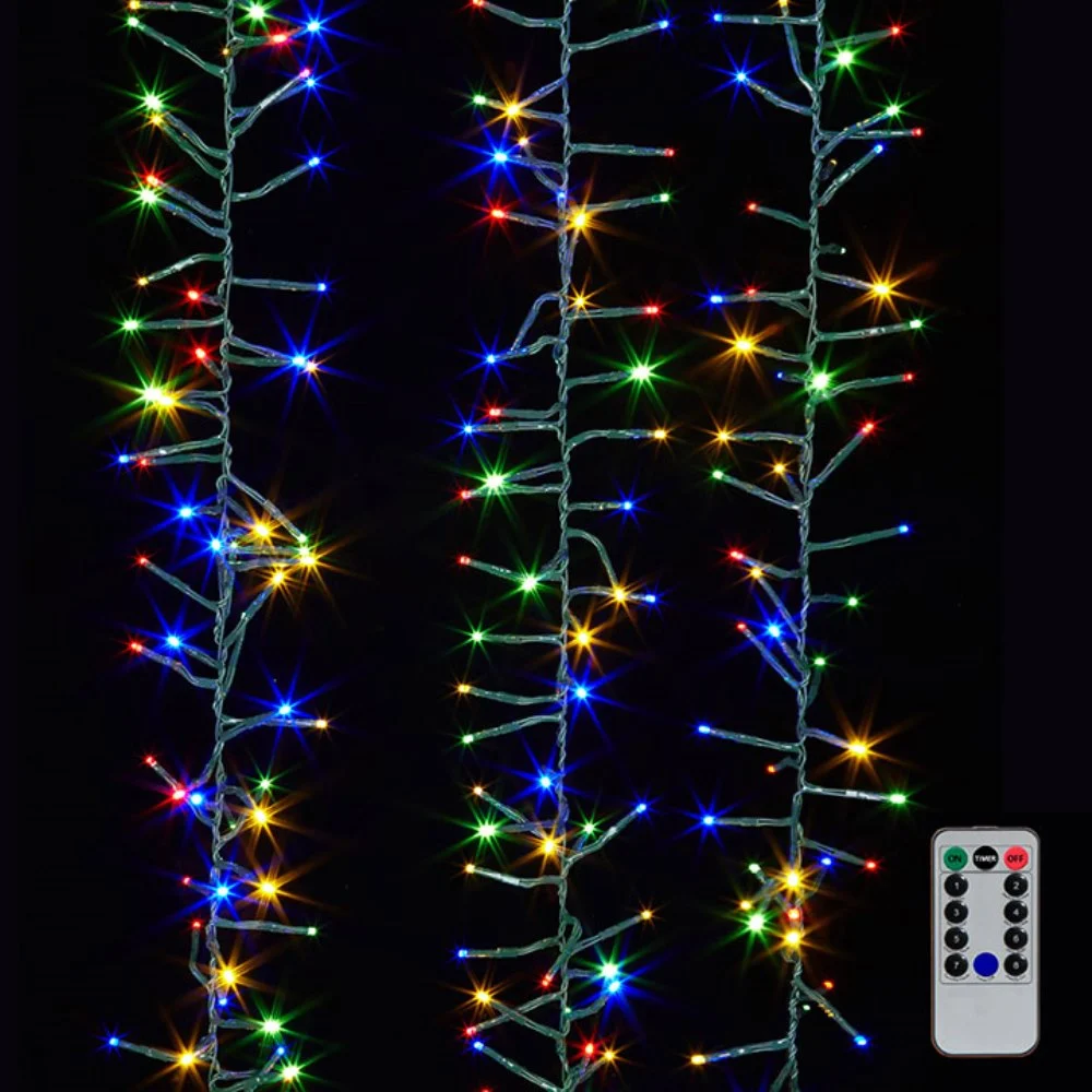 These amazing cluster garland lights will stunningly illuminate your home decorations all season long. Long lasting LED bulbs are clustered very closely together along the wire to create a show-stopping display. Use indoor or outdoor. Use the 8 hour timer feature or the remote included for easy night-time shutoff.
