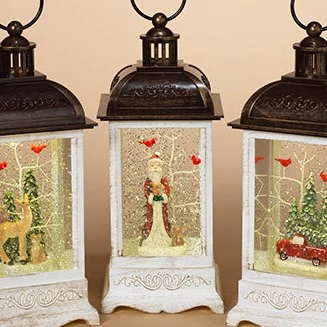Decorative Lantern Snow Globe – Santa with Cardinals